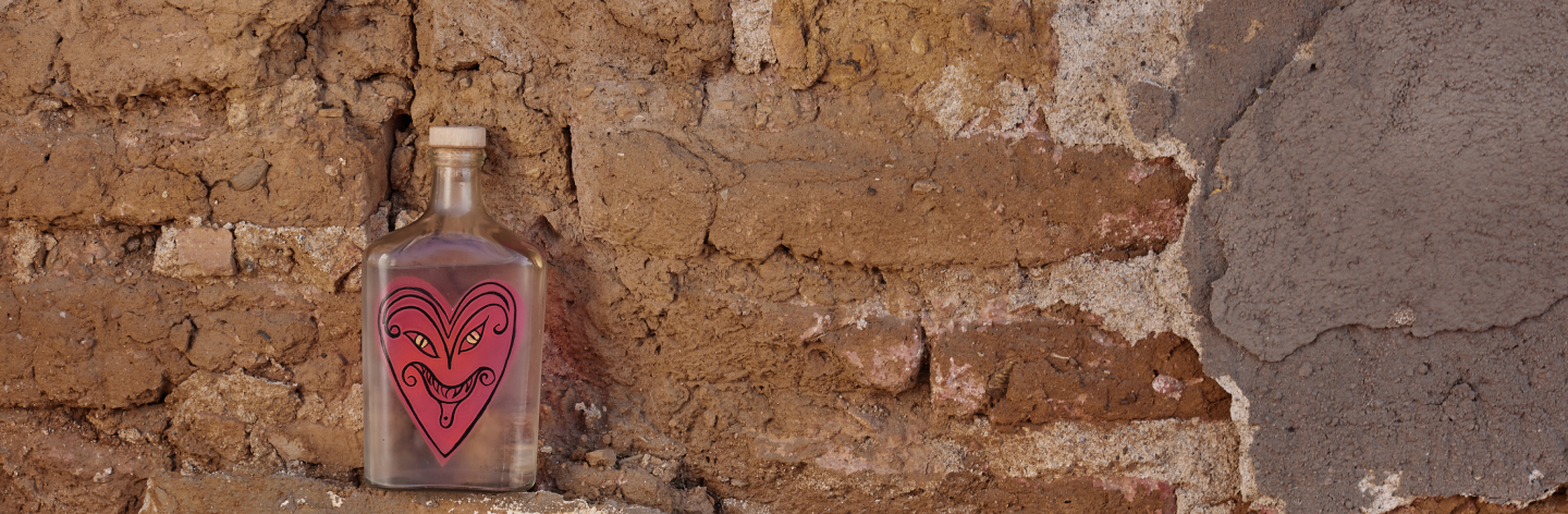 Our partner spent several weeks going door to door in Oaxaca Centro asking if anyone recognized the bottle or knew the artist. Finally as fate would have it, on Valentine’s Day 2021, he found the artist who painted the crazy hearts and we met Andrea aka Rosita.